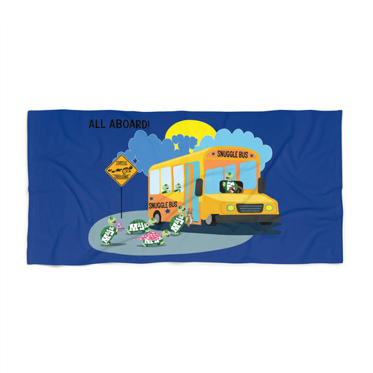 30 in x 60 in Kids Beach towel "Snuggle Bus" (Blue)